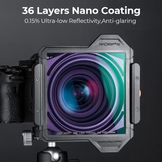 - * Anti-lysforurening Square Filter hjælper med at reducere den uønskede effekt af lysforurening, hvilket giver billeder mere kontrast og klarhed som et resultat, og er udstyret med en beskyttende ramme.