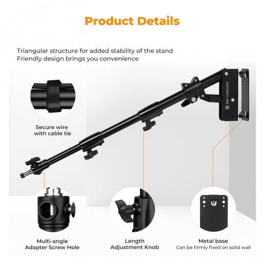 K&F CONCEPT 39,37"/100 cm vægmonteret trekantet boomarm – 180° justerbar til ringlys, videobelysning, kameraer og softbokse