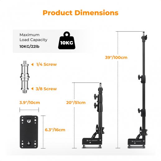 - * 【Alsidig kompatibilitet】Udstyret med en standard 1/4" til 3/8" skrueadapter, kan denne mikrofonarm problemfrit tilsluttes forskelligt letvægtsstudieudstyr, herunder kamerahoveder, udfyldningslys og mikrofoner. Dens brede kompatibilitet gør den ideel til brug i barbersaloner, tatoveringssaloner, skønhedssaloner, musikstudier, fotostudier og livestreaming-opsætninger.