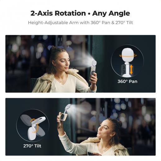 - * 【Foldbar, kompakt og ultralet】: Med en sammenfoldet størrelse på kun 6,4 x 7,5 x 2,3 cm og en vægt på kun 93 g er denne lampe lige så kompakt som en makeup-lampe. Dens foldbare og udtrækkelige design giver dig mulighed for frit at justere afstand og vinkel og understøtter både for- og bagudvendt rotation for ultimativ bærbarhed og kreativ frihed.