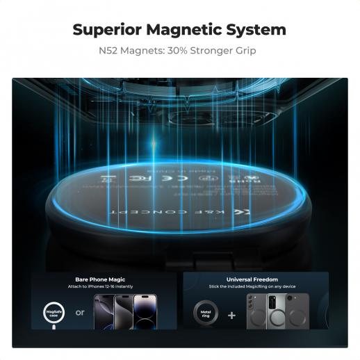 - * 【Øjeblikkelig magnetisk fastgørelse】: Med en kraftig indbygget magnet klikkes denne lampe direkte på iPhone 12/13/14/15/16-serien. For ikke-magnetiske telefoner skal du blot bruge den medfølgende selvklæbende metalring for at muliggøre magnetisk montering på enhver enhed, hvilket giver en sikker og ubesværet belysningsløsning for mobile kreatører.