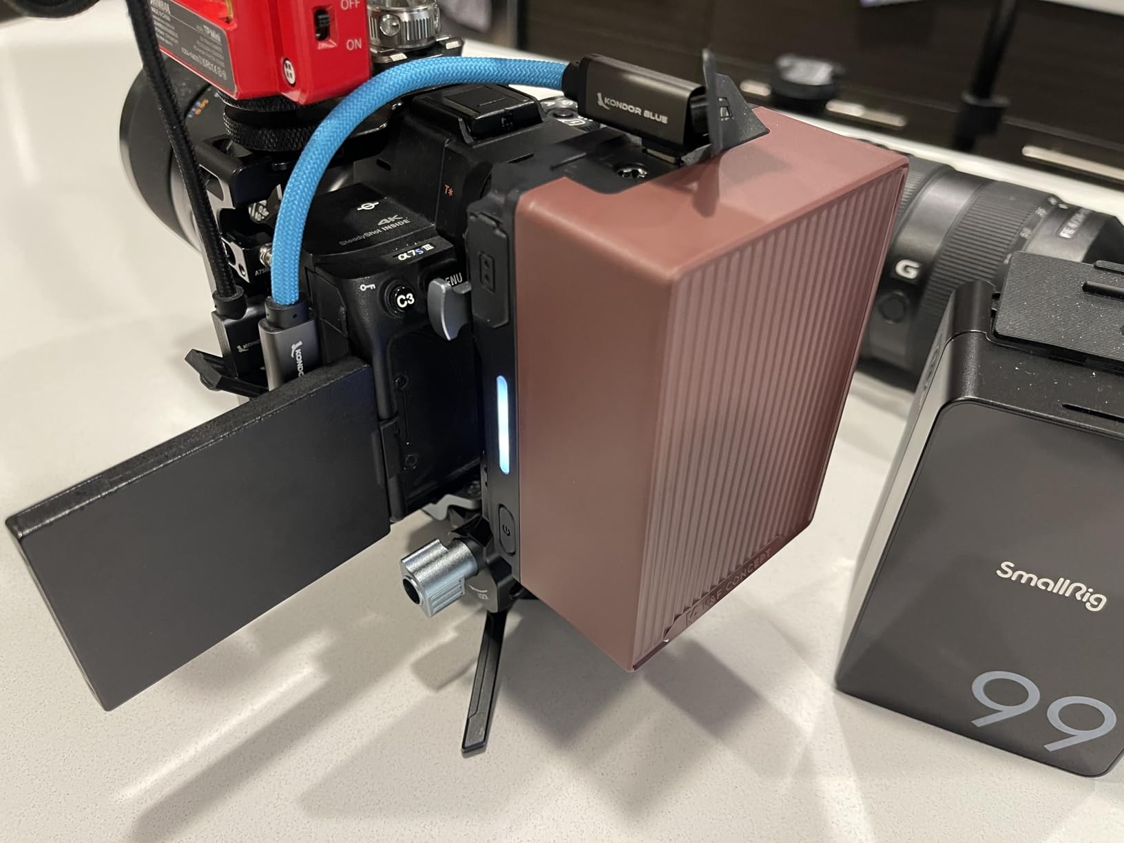 Jeg er næsten helt gået over til V-mount-batterier nu, og jeg kunne ikke være mere tilfreds. Jeg er i øjeblikket til et event, hvor jeg bruger dette batteri med min iPhone og en Aerocaster, og jeg bruger også V-mounts med mine GH5-kameraer, skærme og lys – hvoraf mange kører på 12 V. Til GH5 bruger jeg et D-Tap til GH5 dummy-batteri, og jeg har et par V-mount-adaptere, der låser op for ekstra udgange, inklusive 8 V, som jeg også bruger til mit GH5. Det er mit go-to-kabel til kamerastrøm. Lige sidste måned dækkede jeg et fire-dages event, og et enkelt batteri af denne størrelse drev mig nemt gennem 8+ timer hver dag. Sammen med en stor batteripakke var jeg i stand til at holde fjernkameraer kørende væk fra vægge, hvilket reducerede snublefaren og sparede på griptape. Den eneste ulempe? Jeg kan ikke styre kameraerne eksternt endnu – men det er på vej. Designet er rent og minimalistisk med en enkelt knap og en segmenteret LED-strømindikator, der er let at aflæse. Den har en D-Tap-port på hver side for masser af tilslutningsmuligheder. For prisen er det en solid værdi. Opladning er nem via D-Tap, USB-C eller standard V-mount-oplader. Indtil videre har jeg aldrig været nødt til at skifte batterier midt i optagelsen og stadig have masser af strøm tilbage i slutningen af dagen. Hvis du er afhængig af V-mount-strøm, er dette et kamera, du skal fylde op med - du kan fortsætte med at filme uden at gå glip af et slag.