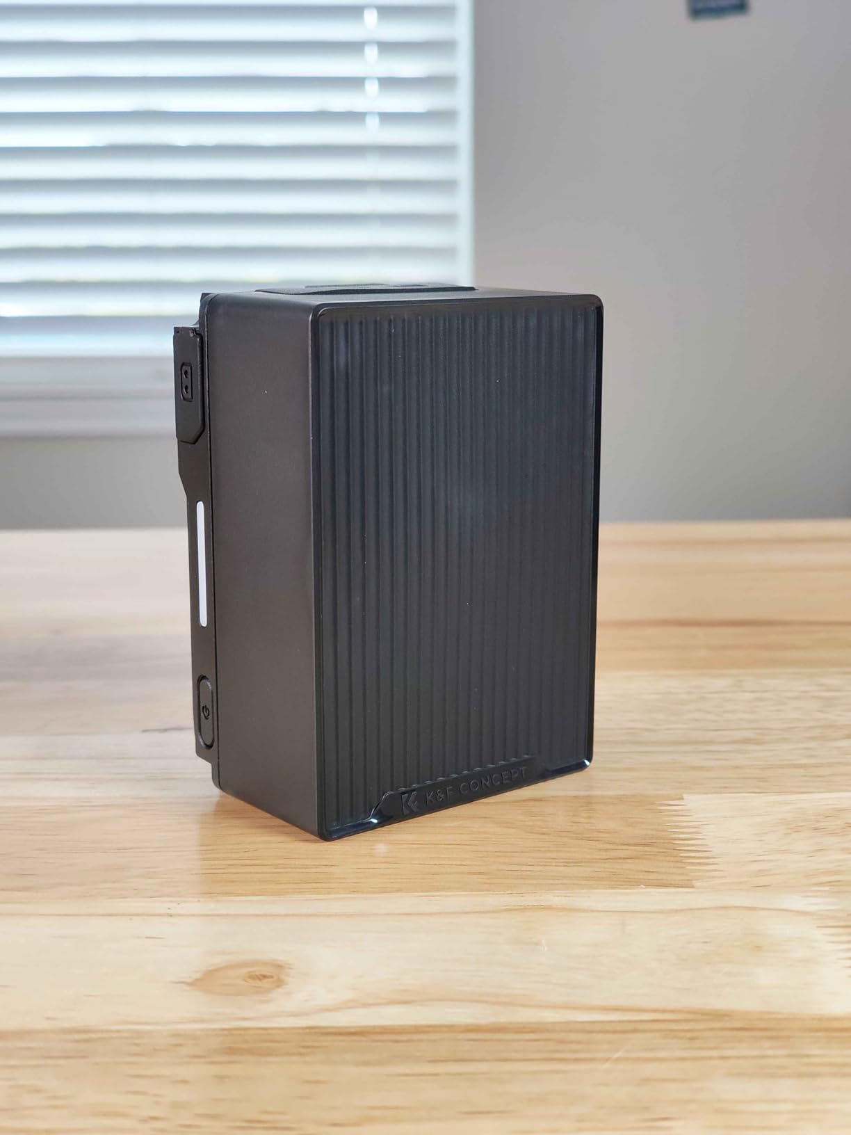 Jeg har personligt købt to af K&F Concept V Mount-batterierne med skærme, og jeg er virkelig glad for dem til prisen. Denne fås med rabat i forhold til den model, fordi den mangler skærm og én USB C-port mindre. Den har stadig PD100w hurtigopladning, USB C- og A-port, to D-tap, DC 12V, tænd/sluk-knap og statuslysbjælke. Den har endda et godt sæt BMS-batteristyrings- og beskyttelsesfunktioner. Det er et godt basisbatteri, der gør, hvad du har brug for. Dette vil være perfekt til mit lygtekit med sin flade sorte farve. Kanterne i kabinettet er af plastik og ikke aluminium, så de er ikke der for at fjerne varme.